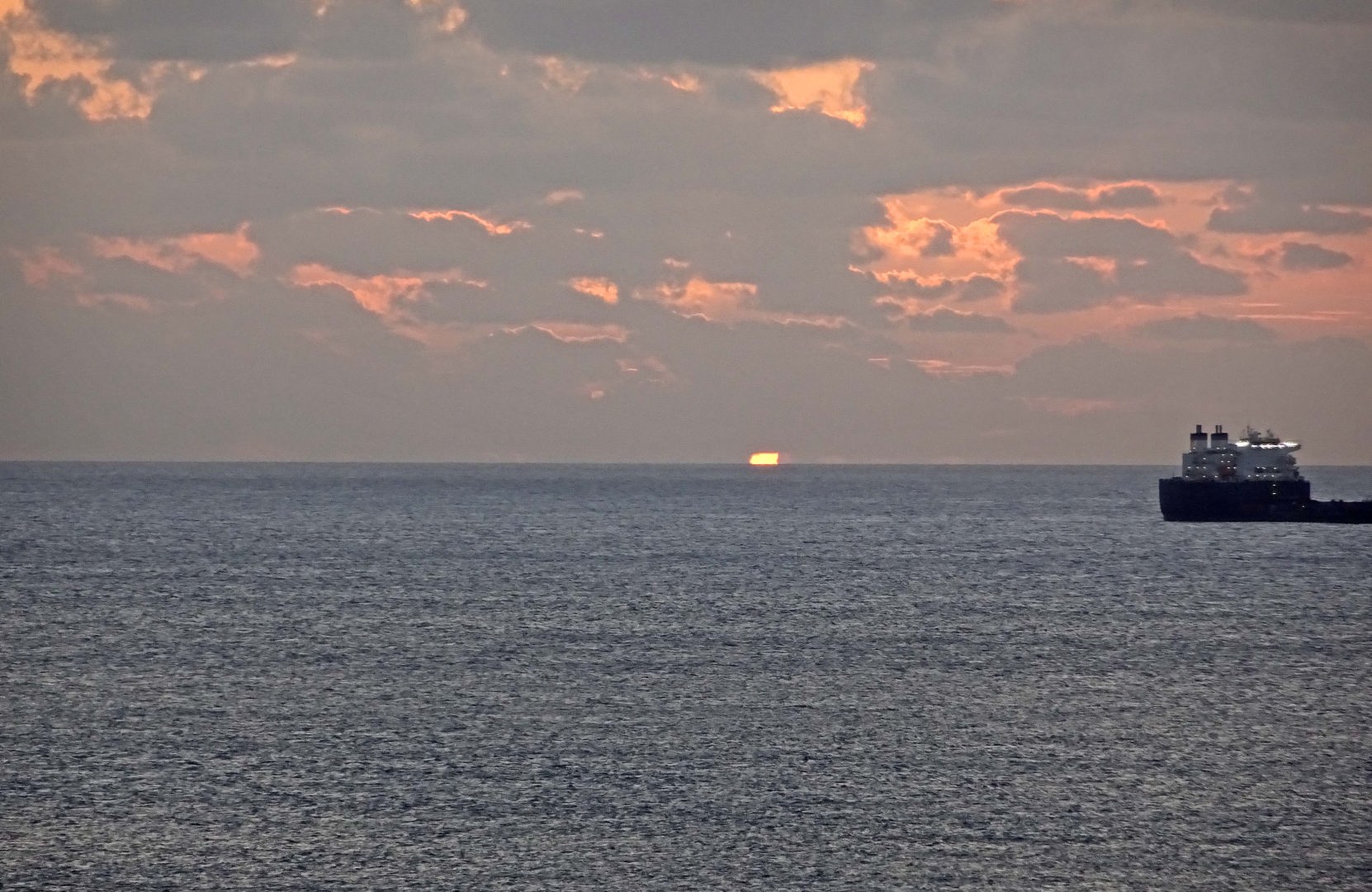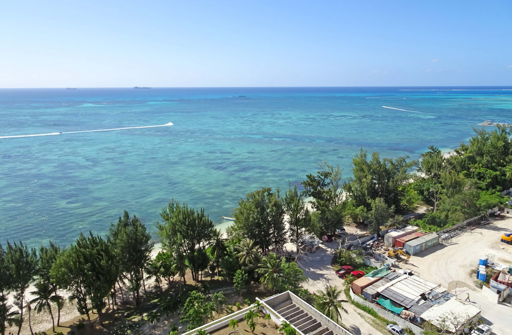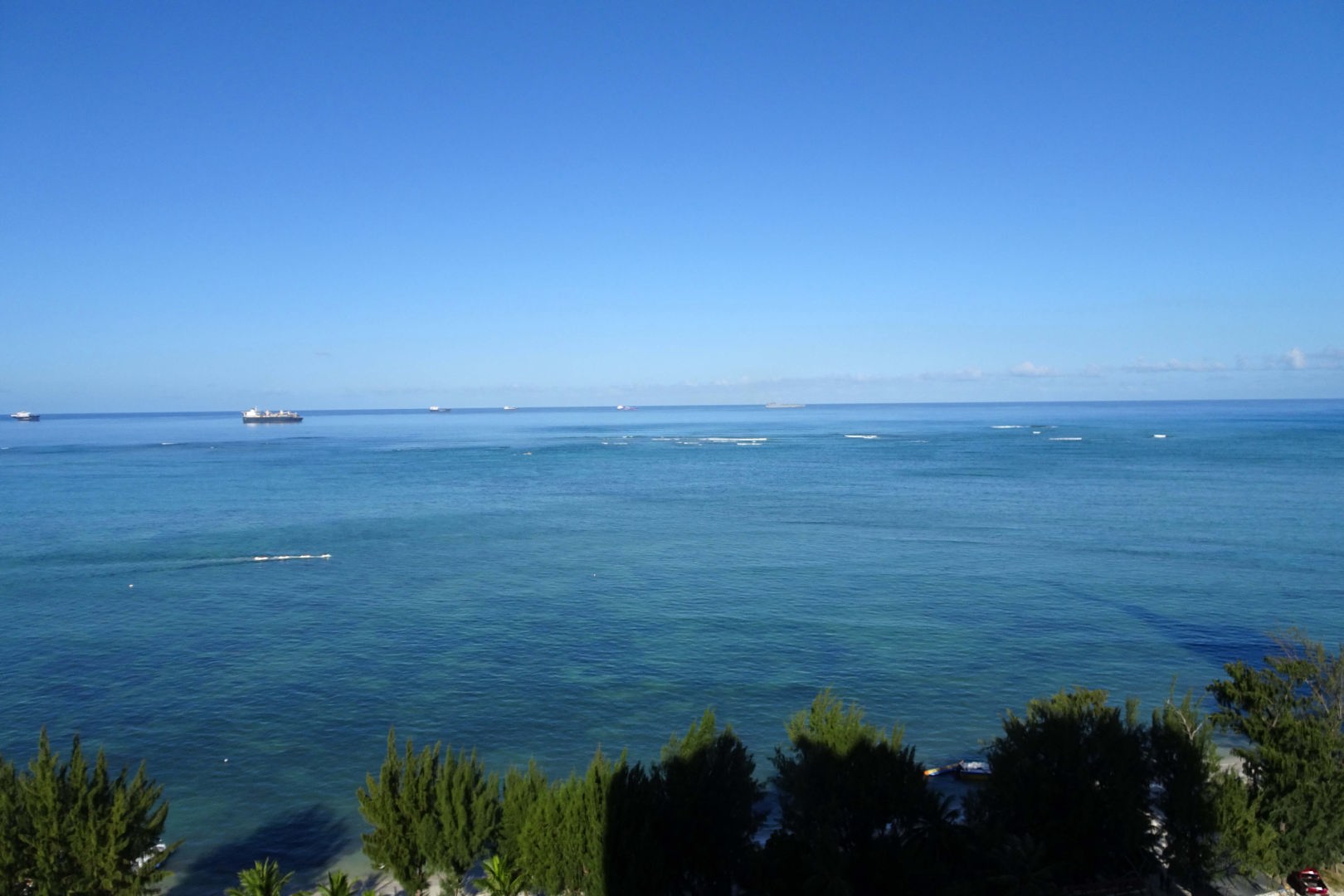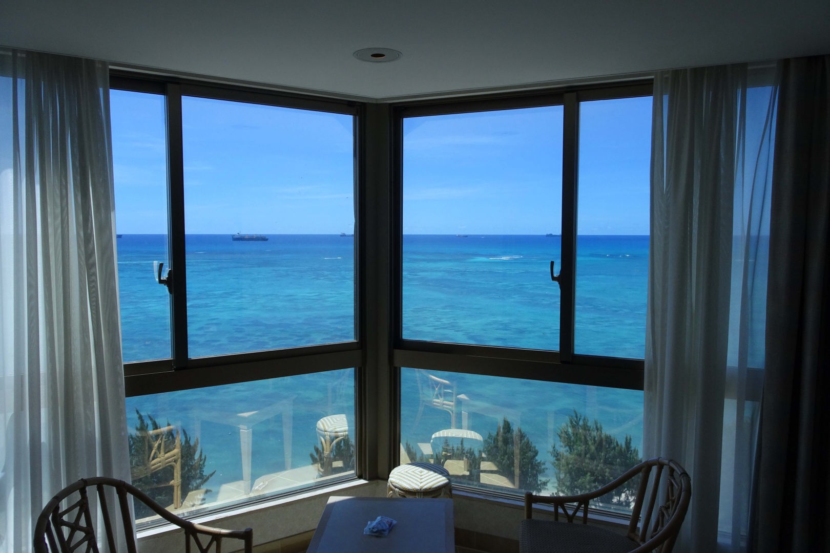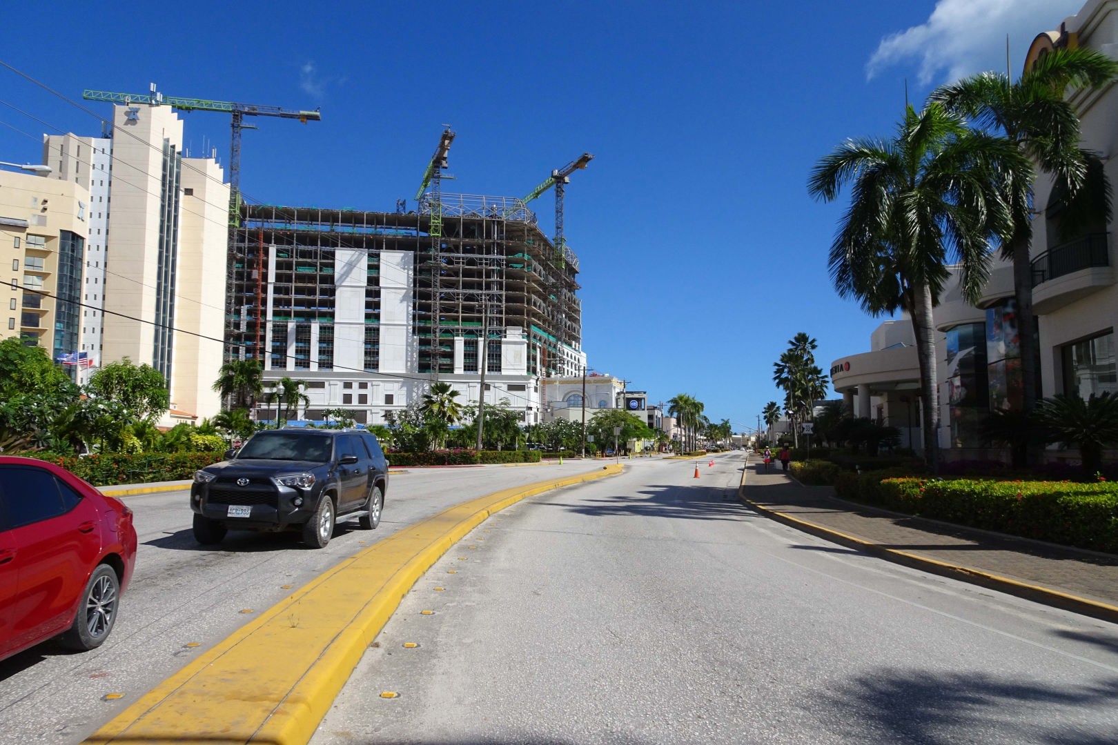 グアム島に近づきました。海岸にはたくさんのホテルが建っているようです。