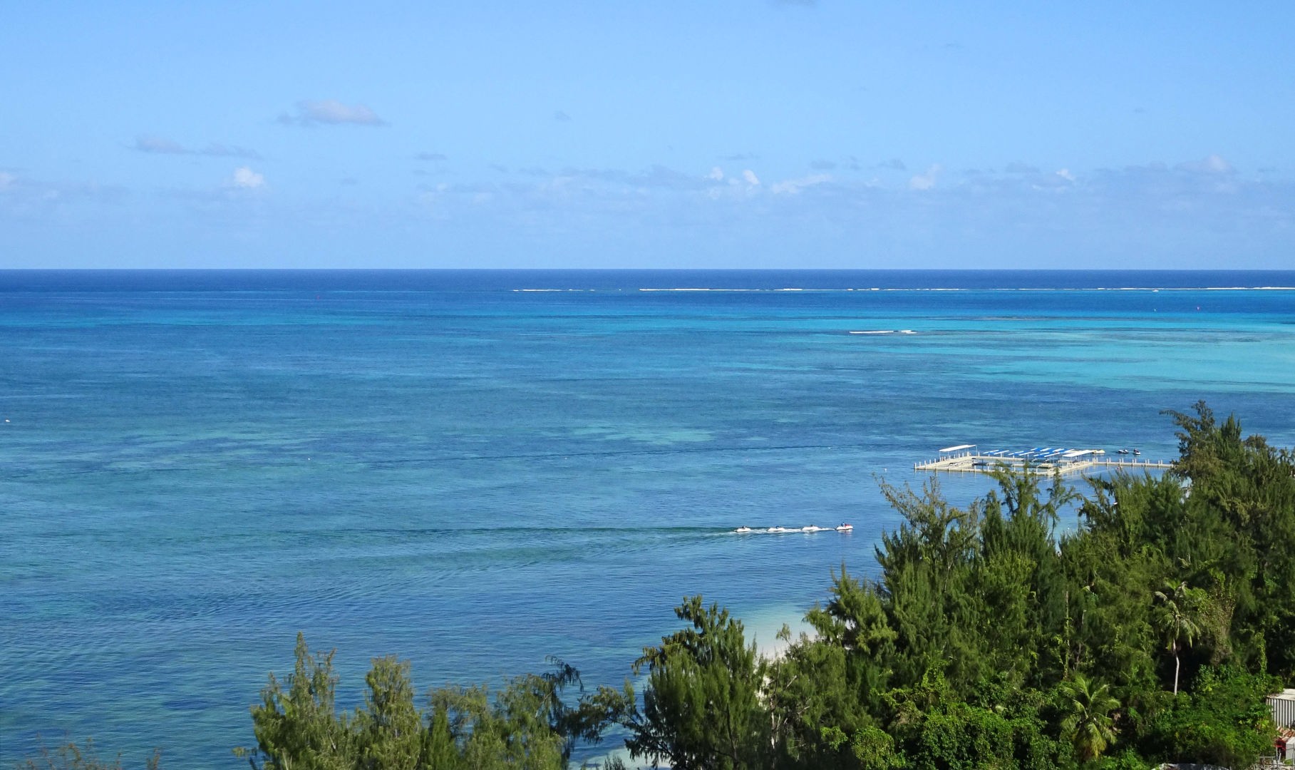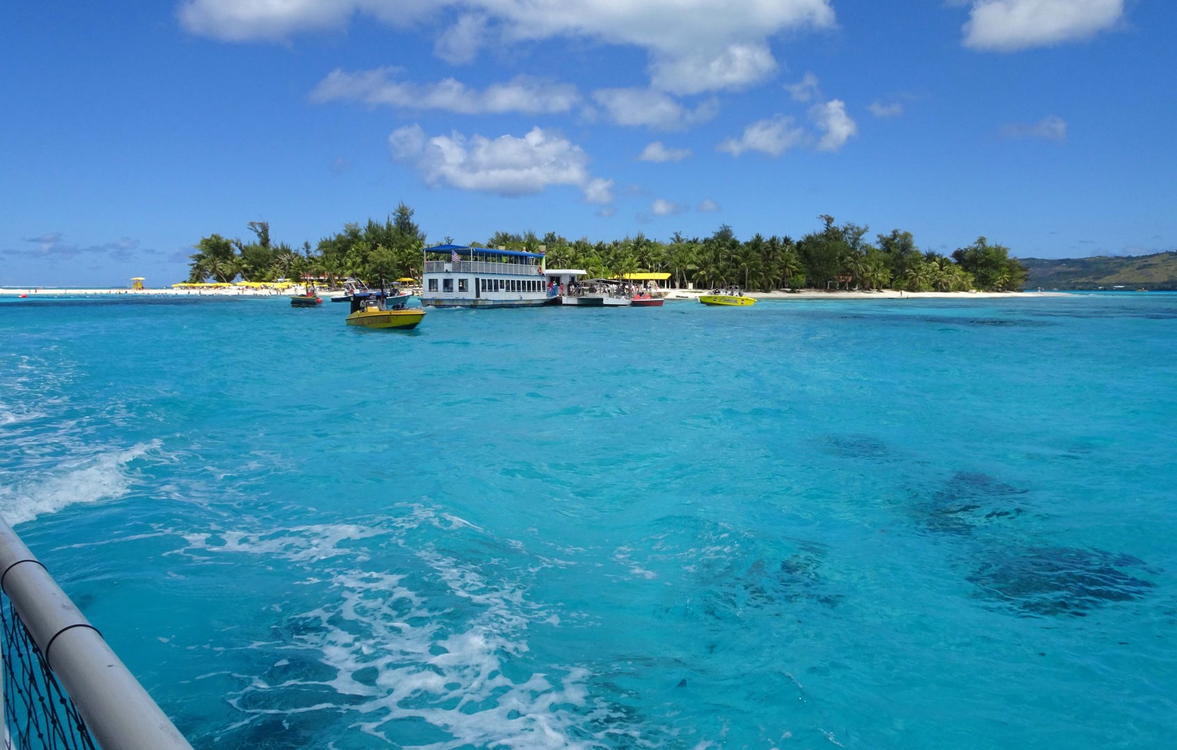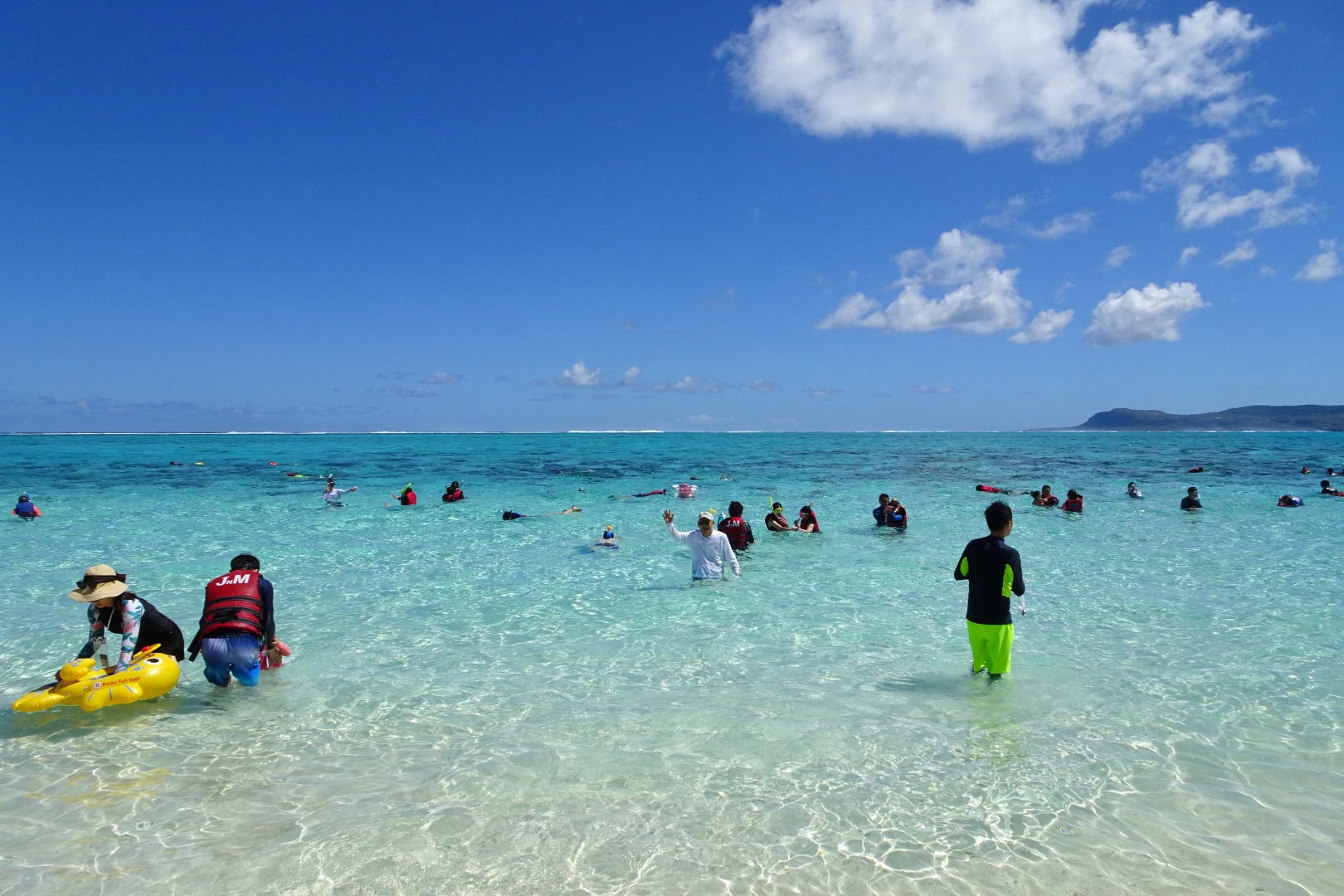 サンゴ礁で作られた浅瀬が美しい海の色を作り出しています。