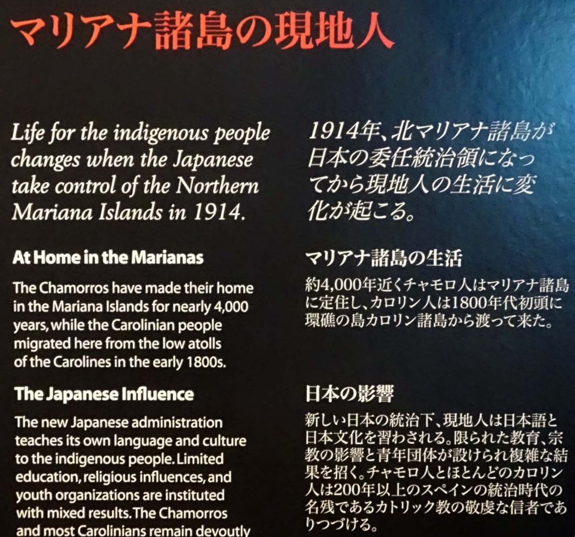一方、ドイツ領であったサイパン島、テニアン島、ロタ島など北マリアナ諸島は第一次世界大戦でドイツが敗戦し、日本は勝利国であり、その大戦後に発足した国際連盟によって日本の実効支配がみとめられ日本の委任統治領となっていました。