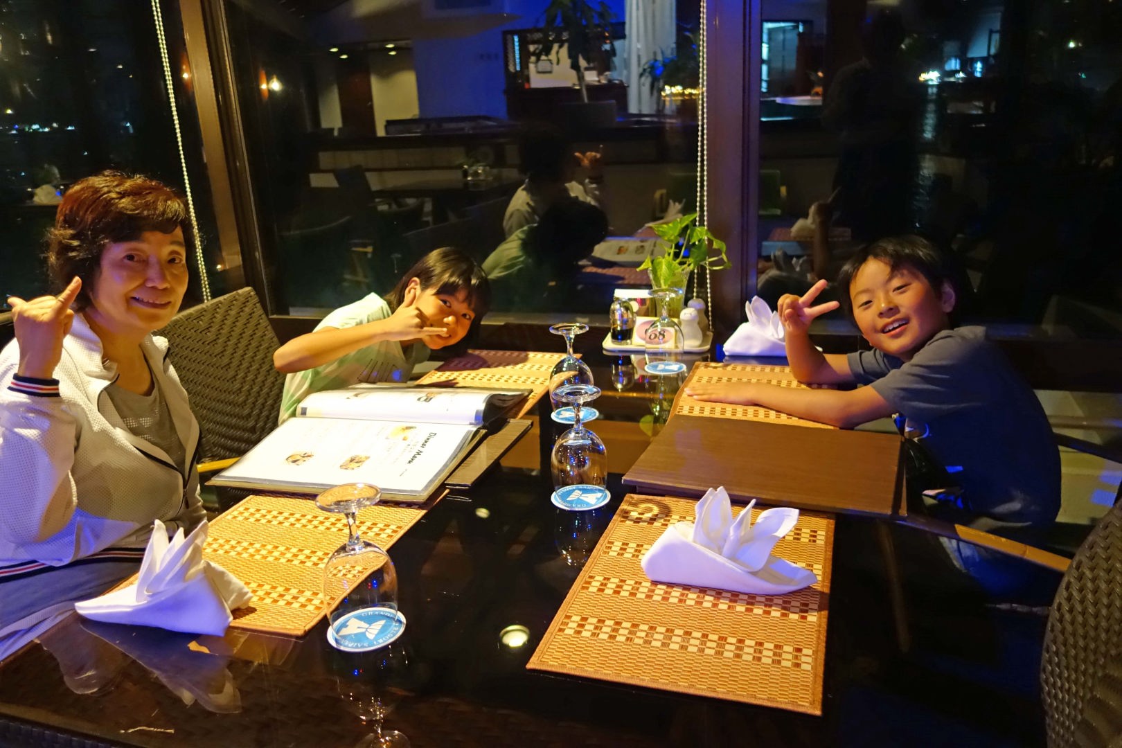 夕食はB棟のレストランにしました。孫二人と合計4名です。