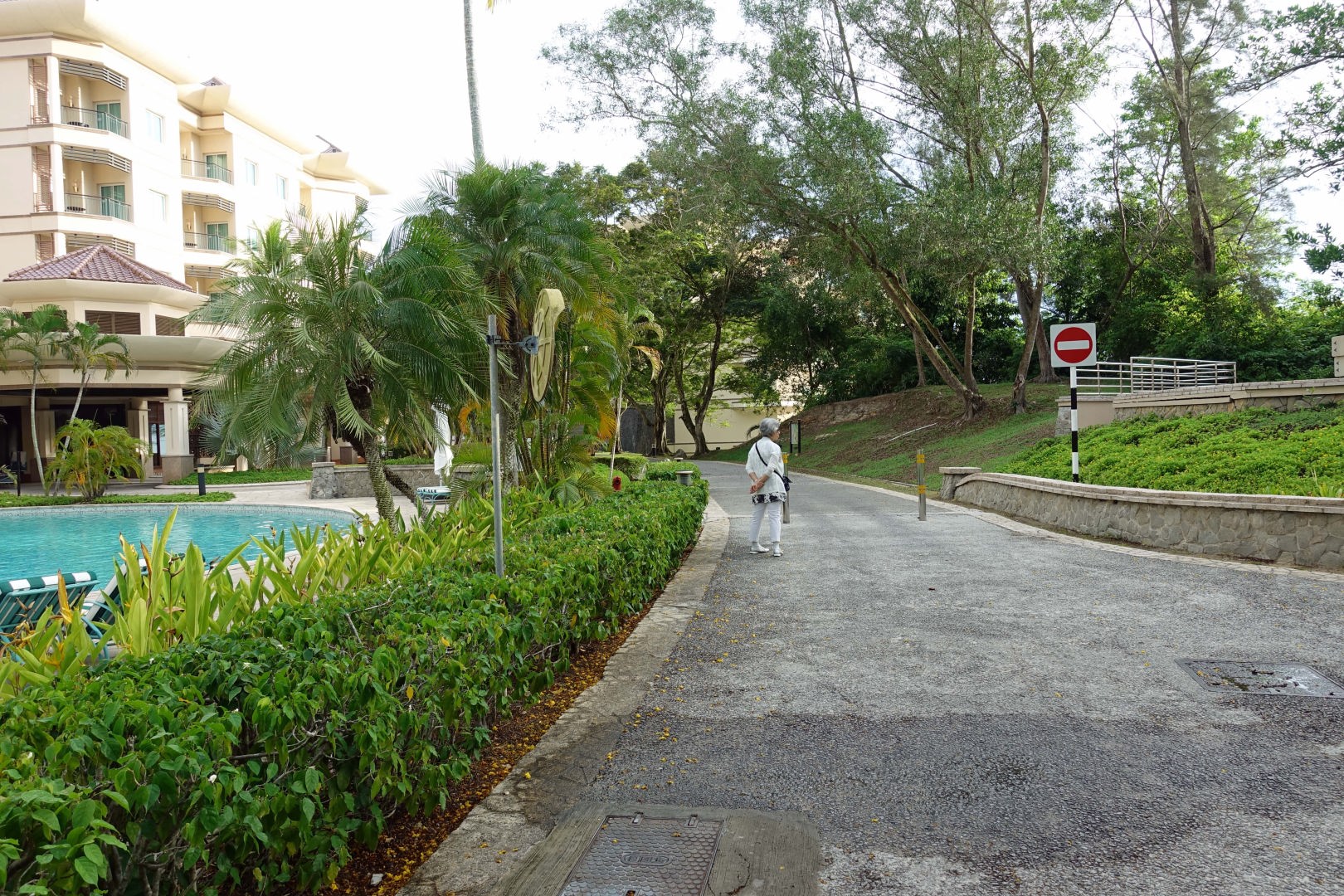 私たちの泊まる部屋は WaterFall ビルです。ロビーのガードマンに頼むとカートで送ってくれますが、歩いても 2、3分なので道を覚えるため歩いて行きました。