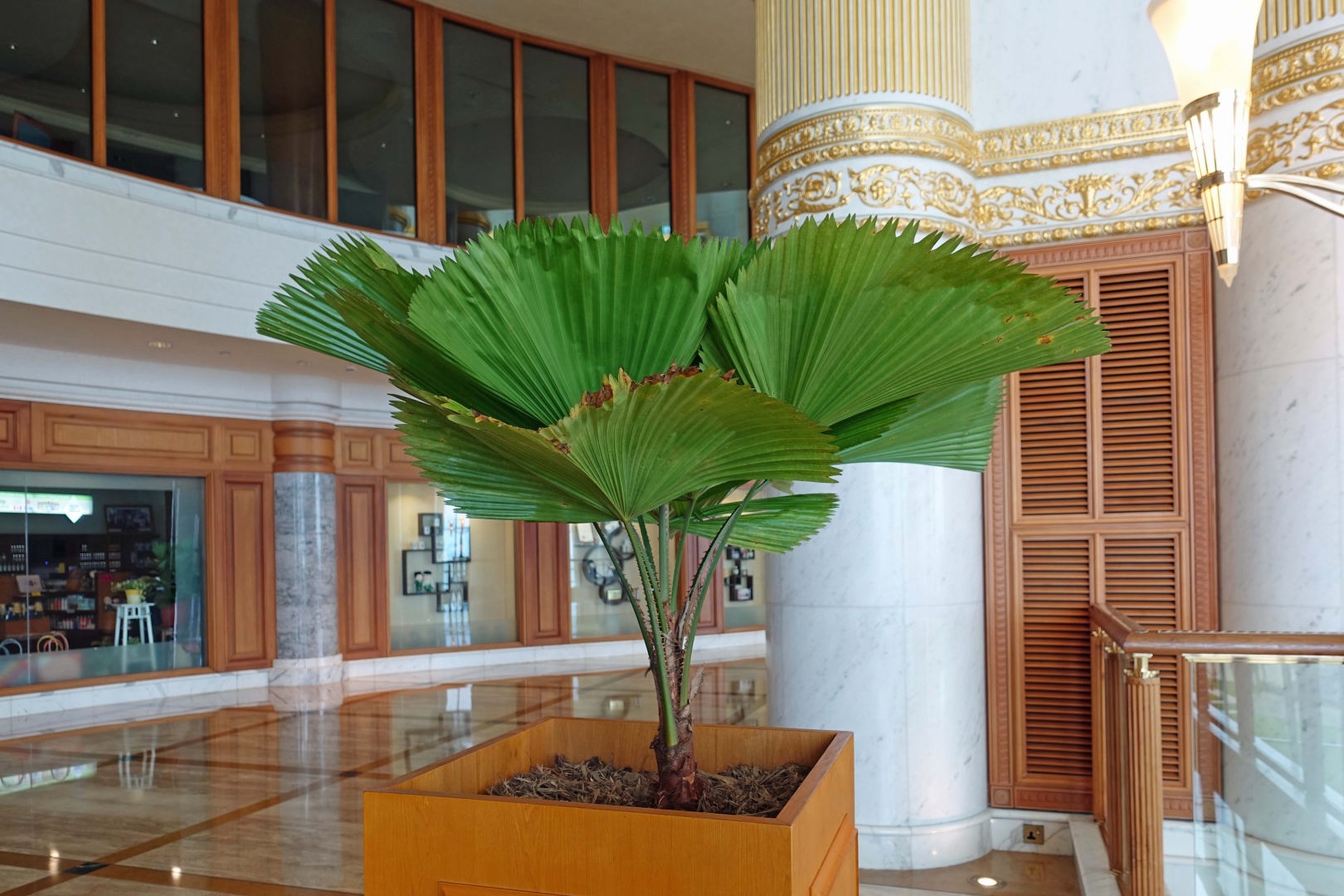 カートを呼んで本館に向かいしました。大理石の床をピカピカに磨き上げています。