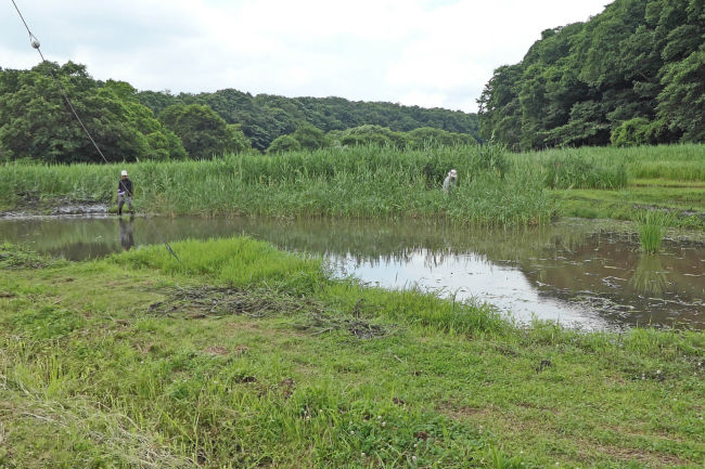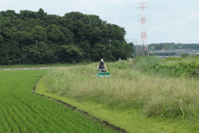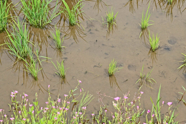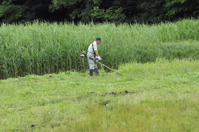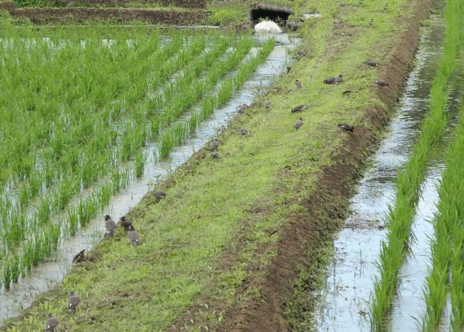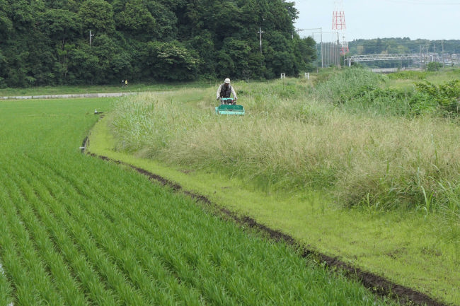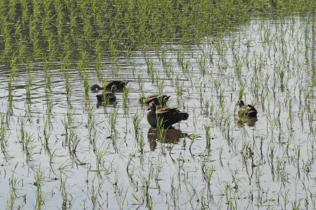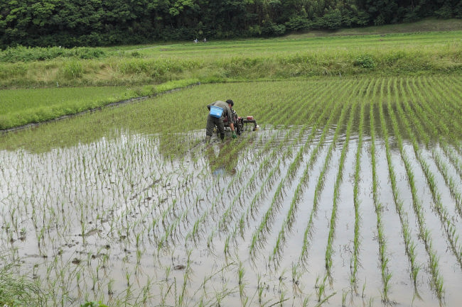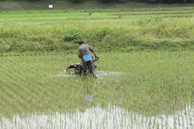 田んぼの雑草を取り除いてりるようです。