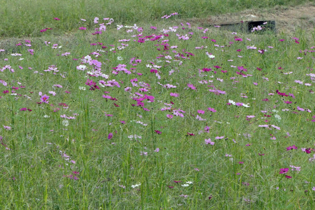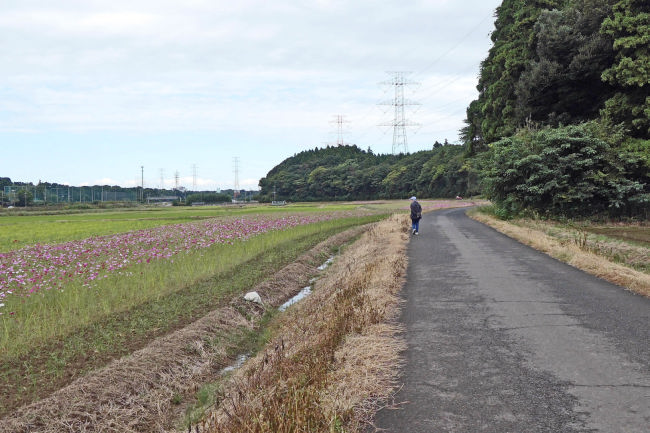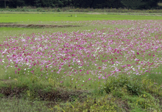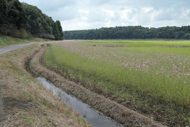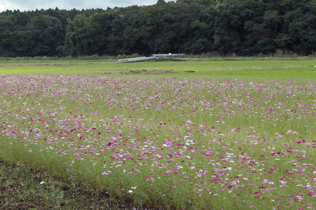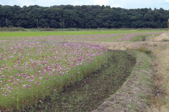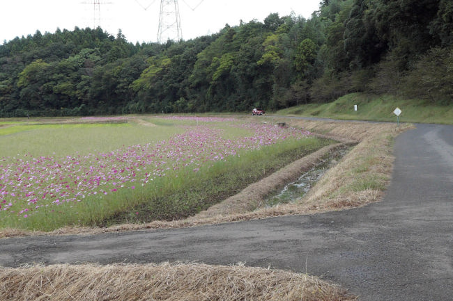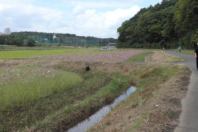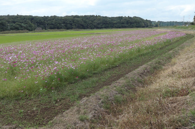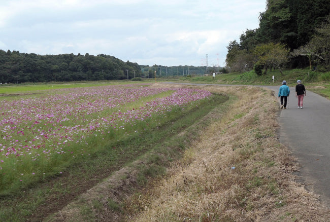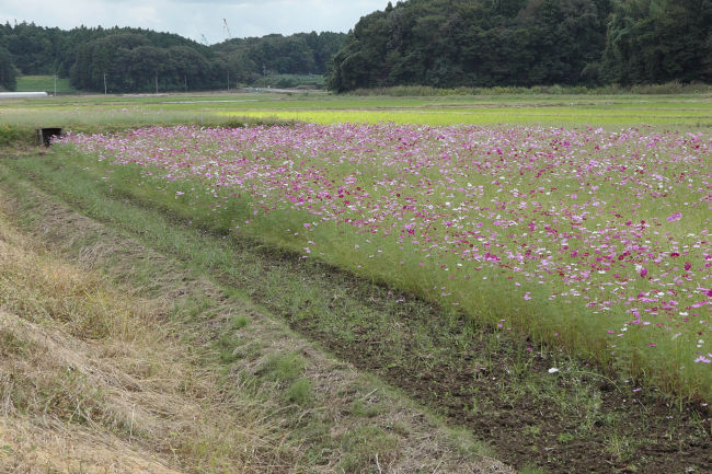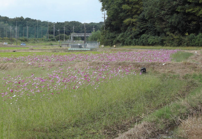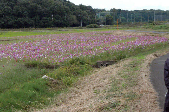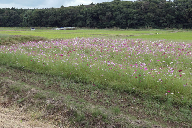 10月中旬 いつも散歩をしている田んぼのコスモスが満開になりつつありました。