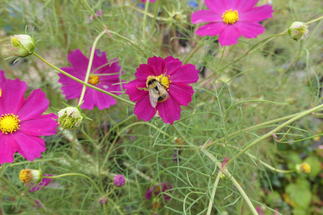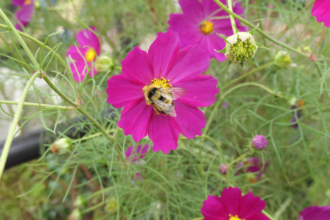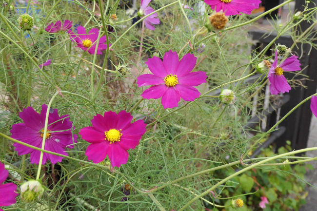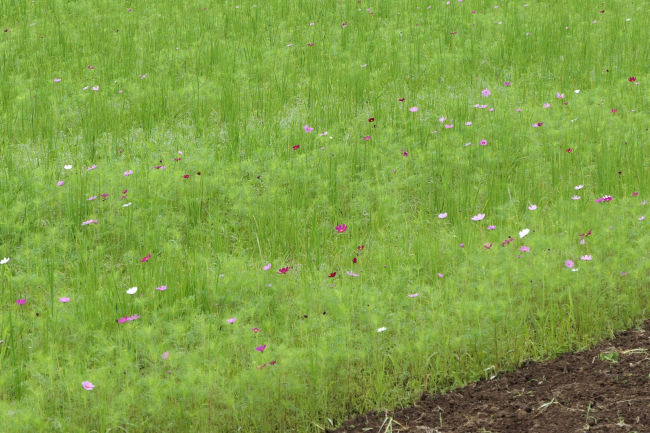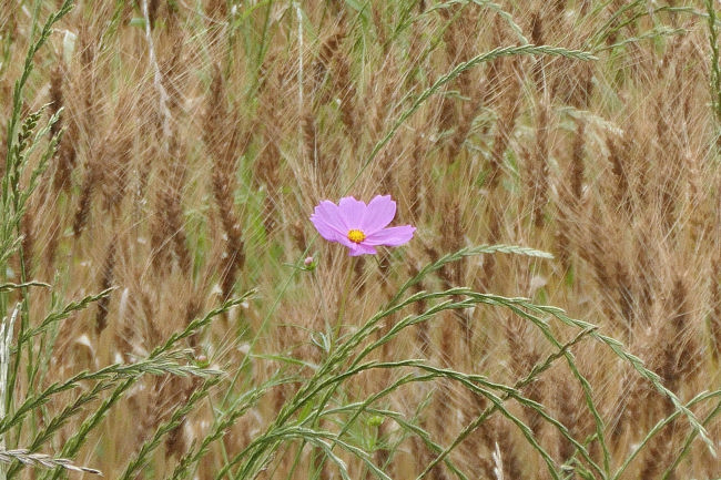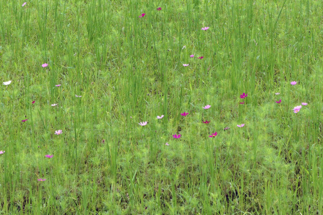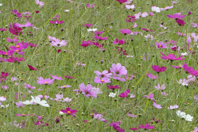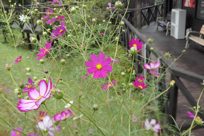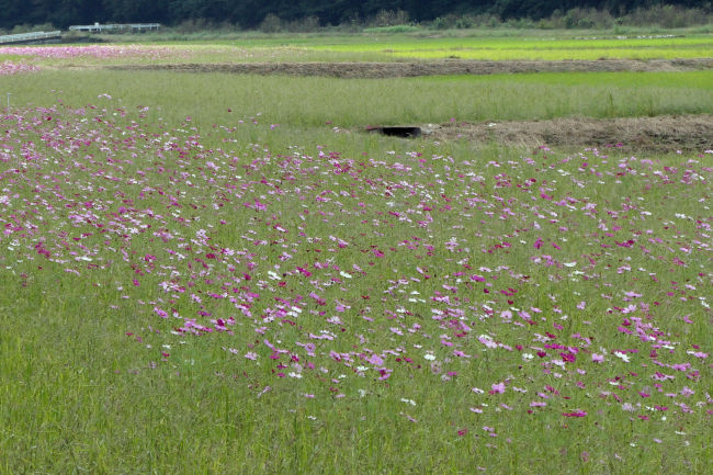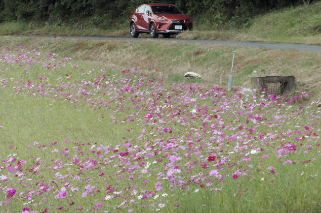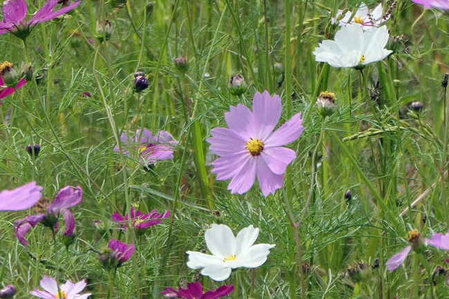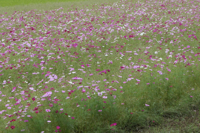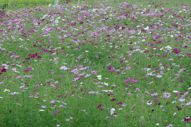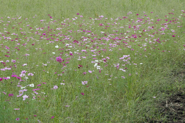 10月中旬 いつも散歩をしている田んぼのコスモスが満開になりつつありました。