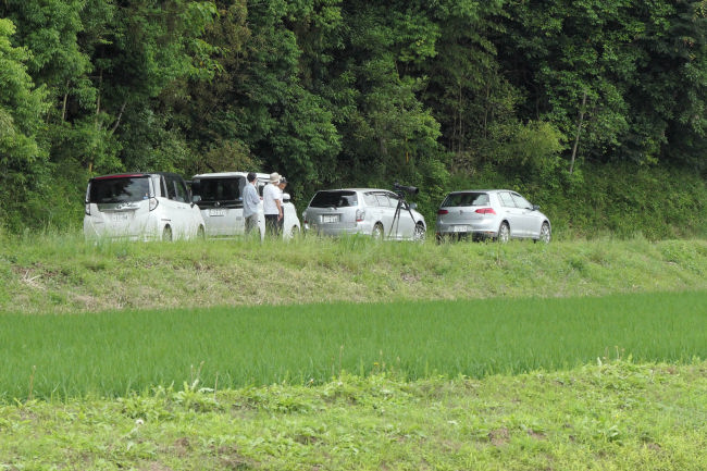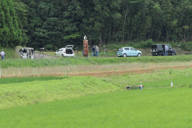 たくさんのカメラマンが集まっています。この公園の名物小鳥、「さしば」がいるとの情報が入ったのでしょうか。カメラ愛好家たちはその情報を交換し合っているようです。 |