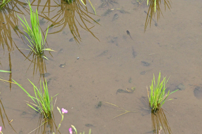 オタマジャクシがたくさん泳いでいます。