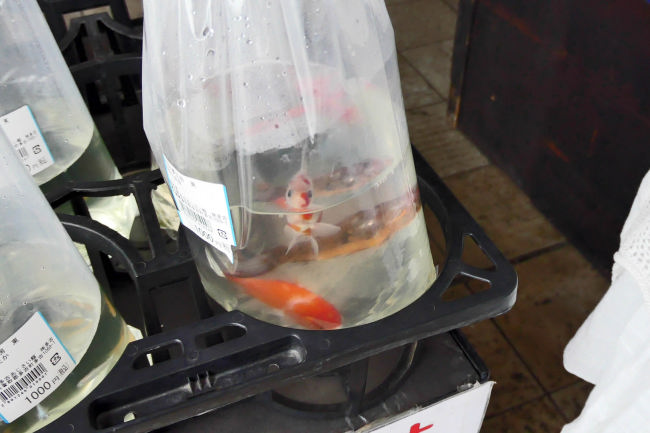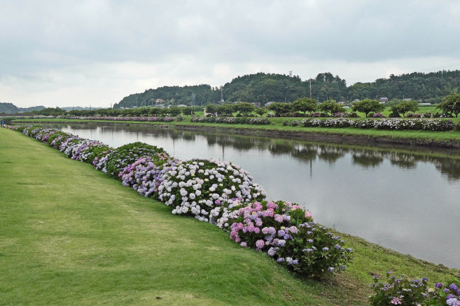 栗山川のあじさい公園にも行ってみました。金魚を3匹買って帰りました。