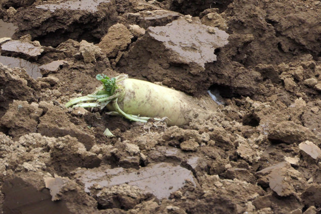 いつもの大根畑です。多少高い所にあるので、ここまで登ってくるのが運動になるため、よく通ることにしています。