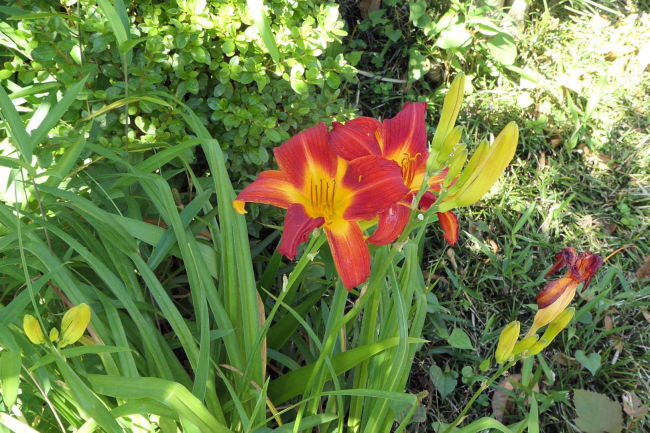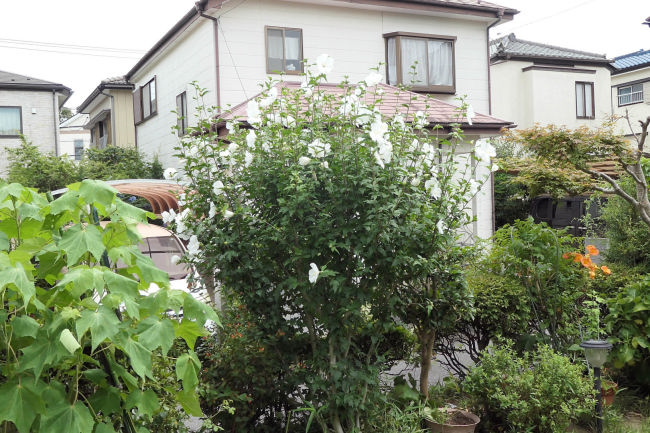 自宅の庭のムクゲやキスゲが満開です。