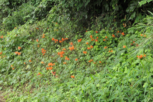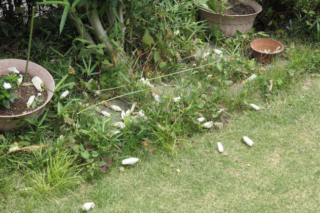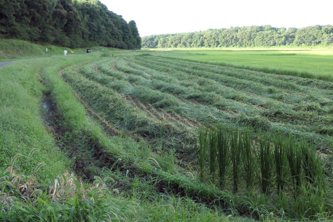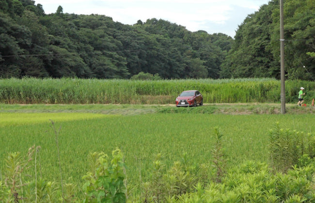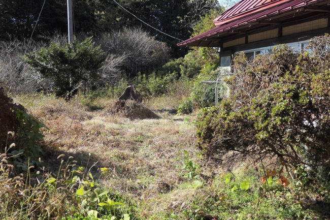 駐車場の後ろの人の背丈もある大きな草がきれいに刈られていました。