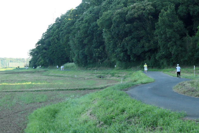 7月になると昼間の散歩は出来なくなります。朝食前にいつもの散歩道を歩きます。結構たくさんの人もすでに歩いています。 |