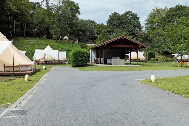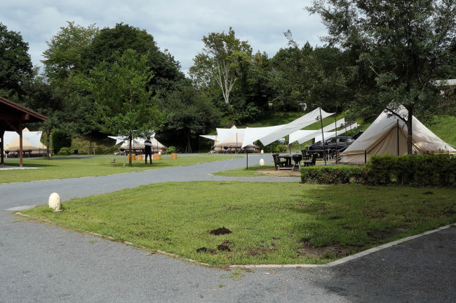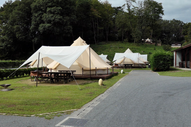 モビリティもてぎないに作られたキャンプヴィレッジです。最近はこのようなテントに泊まるのが人気だそうです。