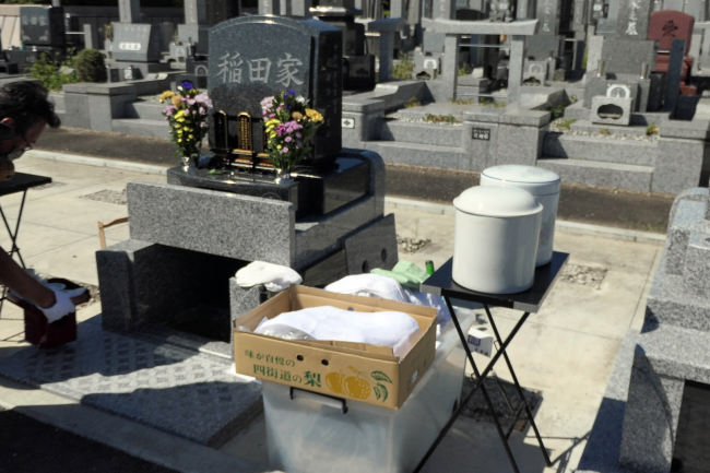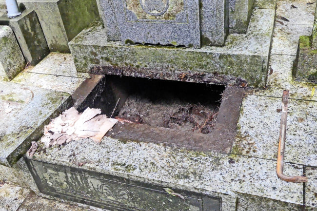 将来大きな地震が来るとこれらの石は倒れ、周りのお墓への影響もありそのまま放置することは出来ません。そのため、墓石屋さんにお願いし、お坊さんにもお願いして、すべての墓石の魂を抜いてもらうことにしました。 |