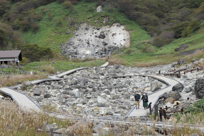 那須に来たときはたいがい寄る殺生石ですが、行ってみると以前行ったときの硫黄の臭いは全くありませんでした。