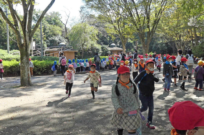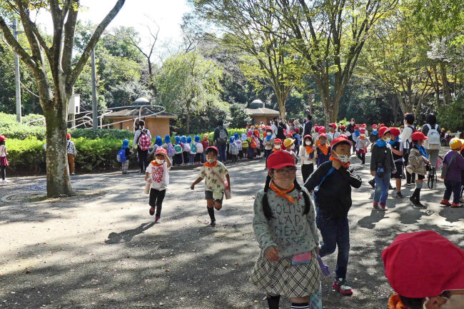 運動のため歩いてみました。中学生以下は無料のためか子供たちがたくさん来ていました。教室単位の遠足のようです。
