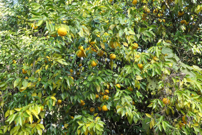 家の庭のユズの木にはたくさんの実がなっていたので手の届く範囲で大きめの実だけを採って来ました。