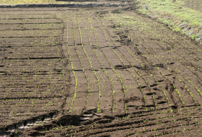 麦が芽を出してきました。稲穂を刈った後に、再びその稲がだいぶ伸びてきています。