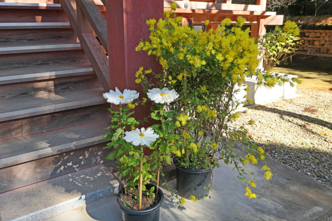 玄関の花と庭の花などです。