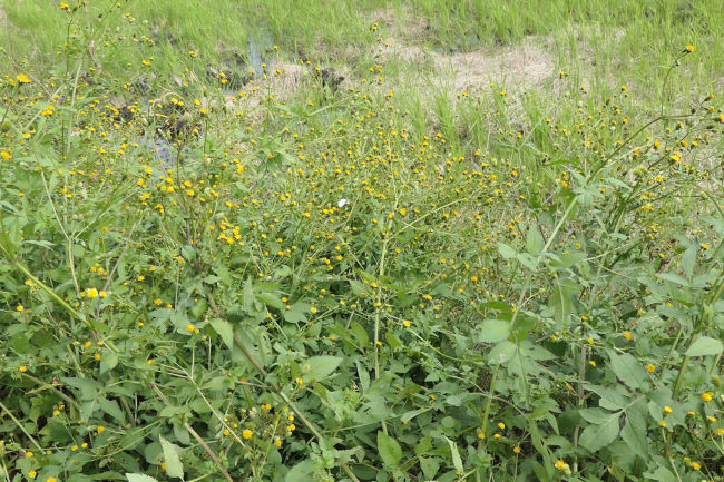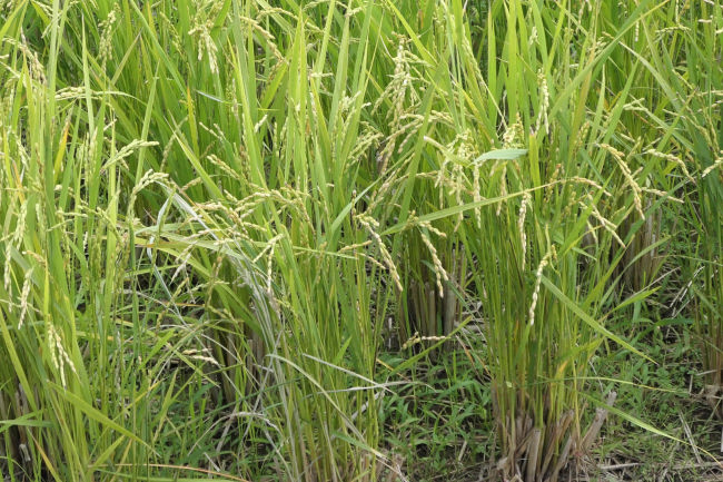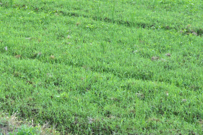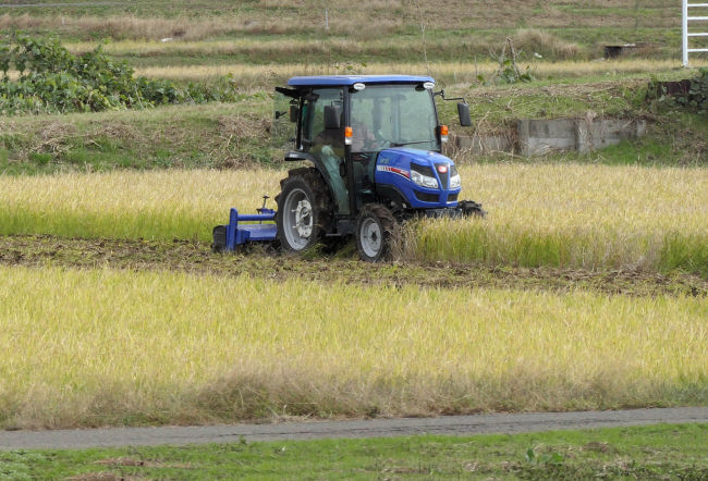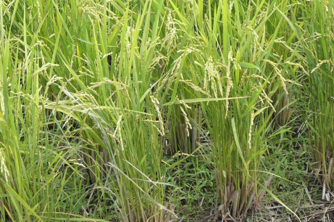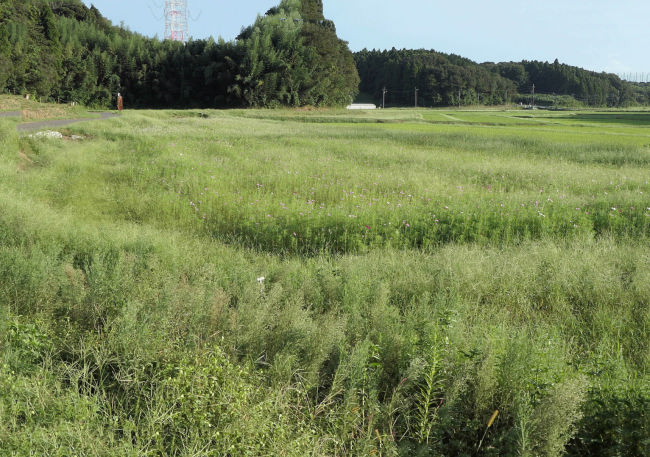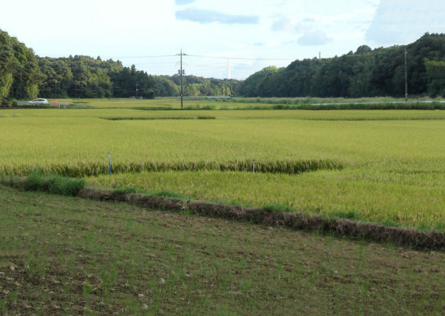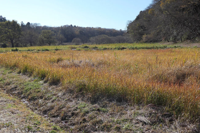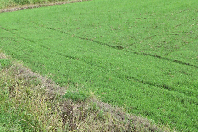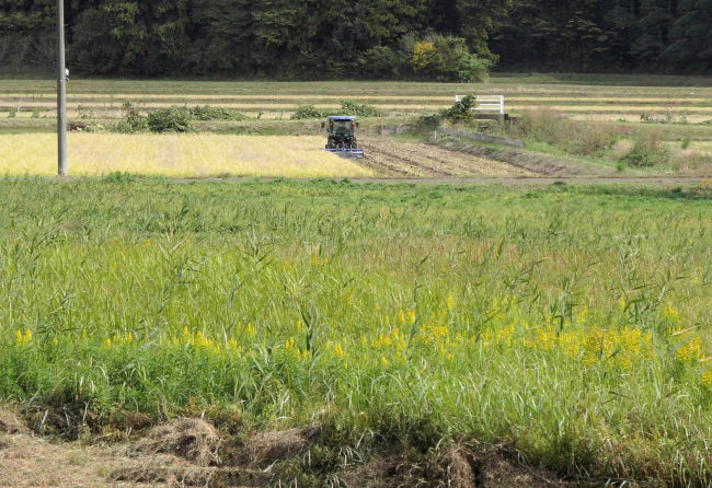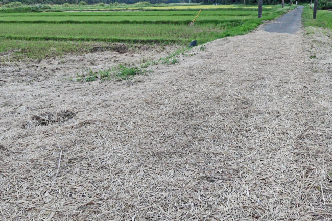 一度刈り取った稲が芽を出し、結構な大きさになり、稲穂が実り始めていました。しかし稲の実は小さく利用は出来ません。その稲を刈り取って田んぼの肥料にするようです。 |