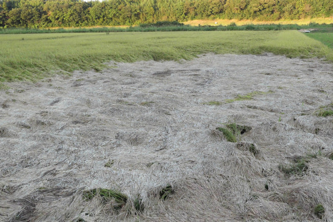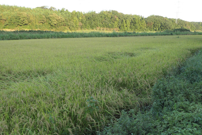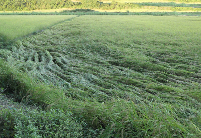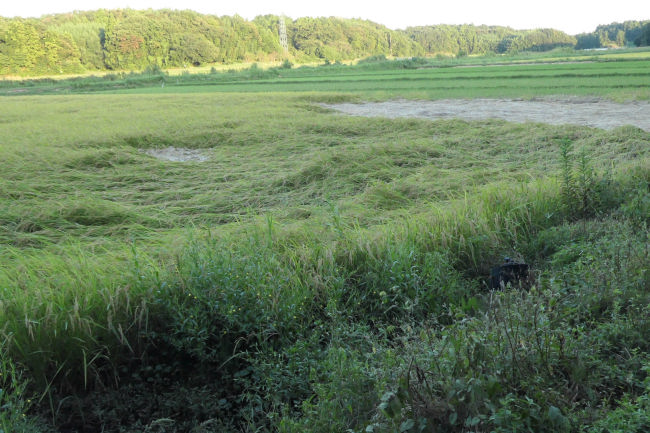 これら水没地点の稲は後にきれいに回復されました。農家の方々の努力は大変でした。 |
