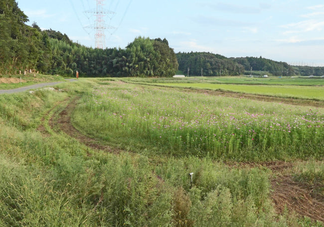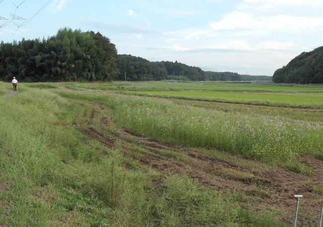 8月下旬 真夏です。今年の猛暑は記録的だそうです。散歩は早朝になります。麦刈りの後には秋のコスモス畑の準備がなされていました。 |