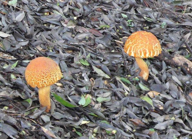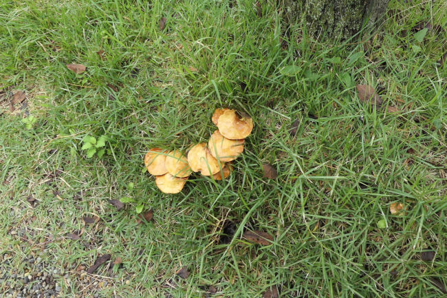 以前のお墓を訪れ、様子を見てきました。近くに立派なキノコが育っていましたがどうも毒キノコのようです。