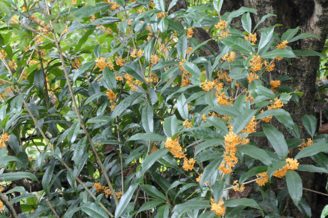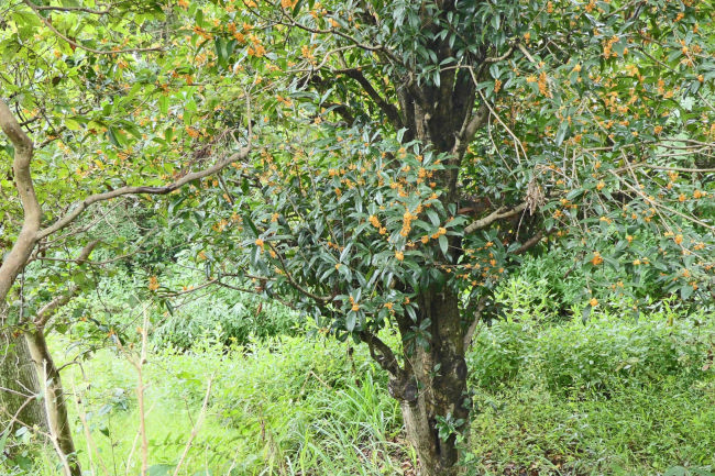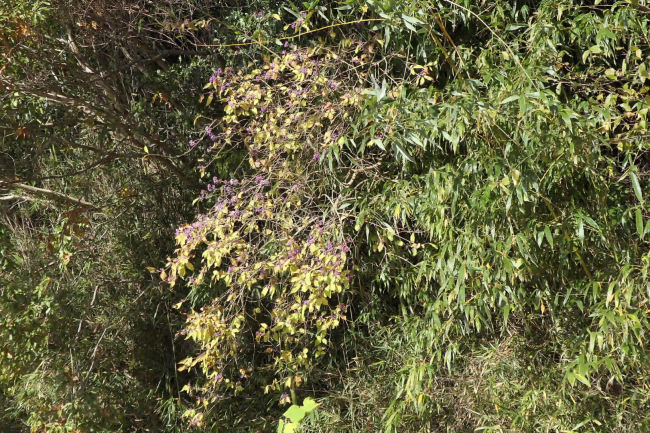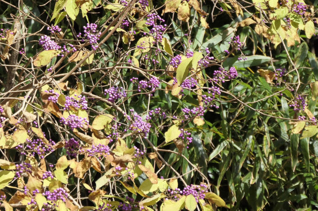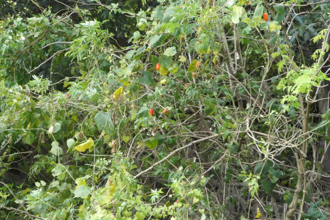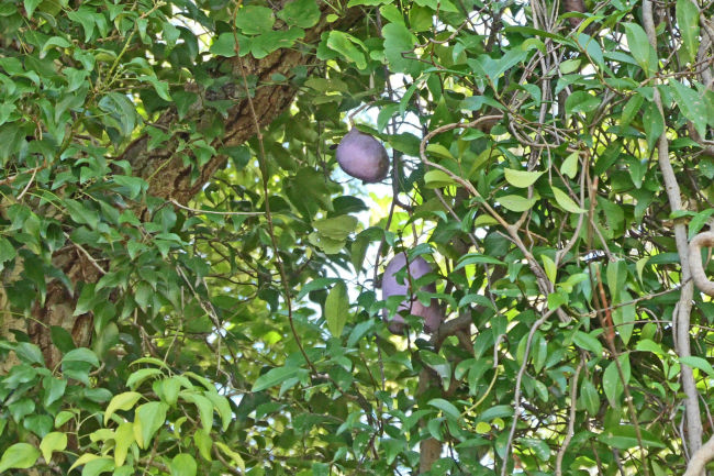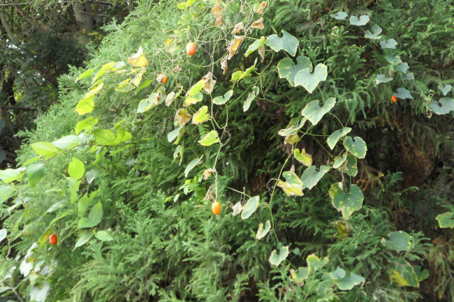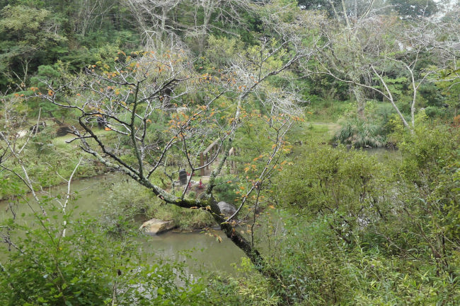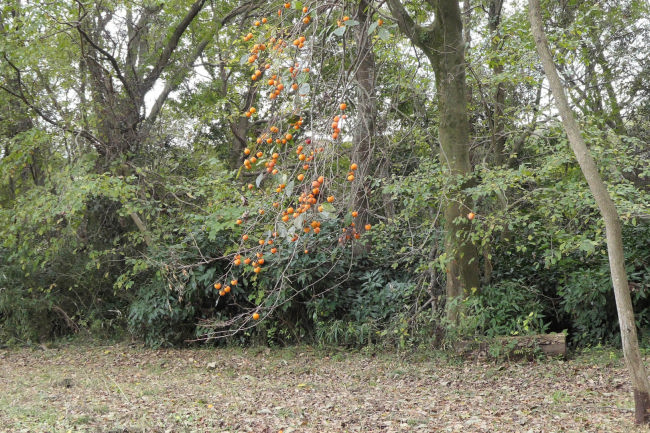 たくさんの柿が実を付けています。一個味を見てみましたが、恐ろしく渋く、舌のしびれがなかなか取れませんでした。 |
