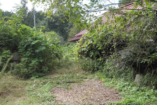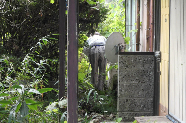 我が家の庭は草が生え放題なので玄関には庭の隙間を通ることになりましたが、特に用もないので家の中には入りませんでした。 |