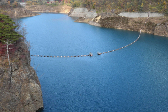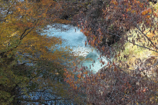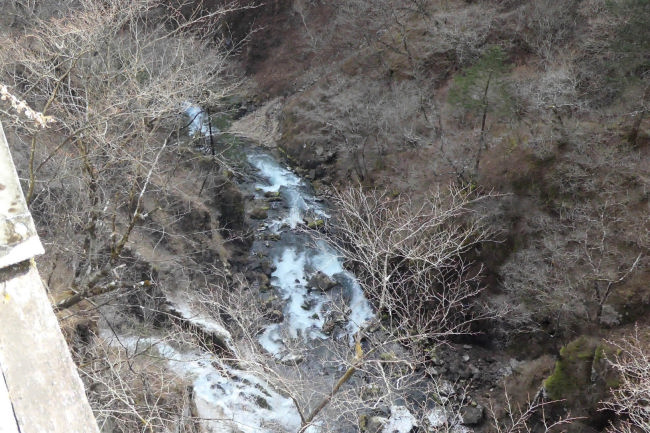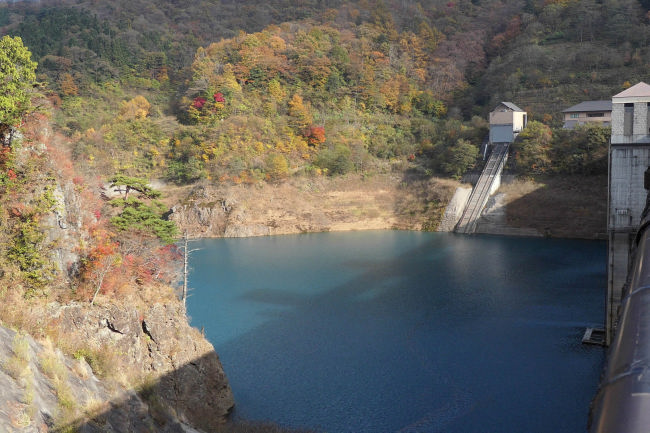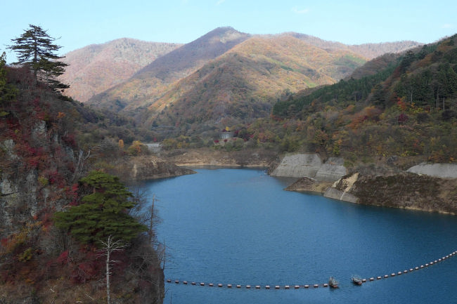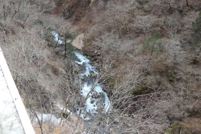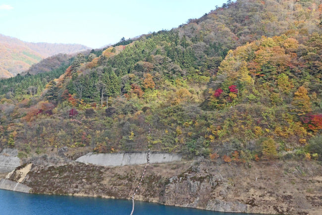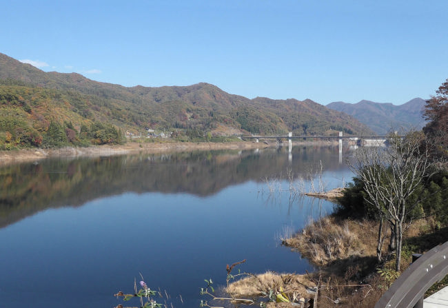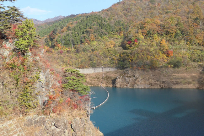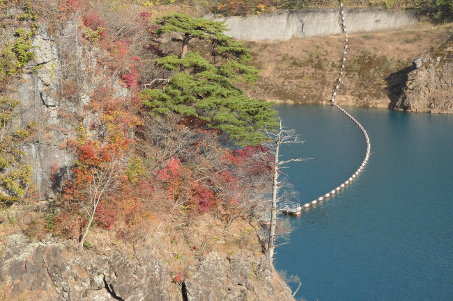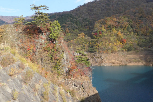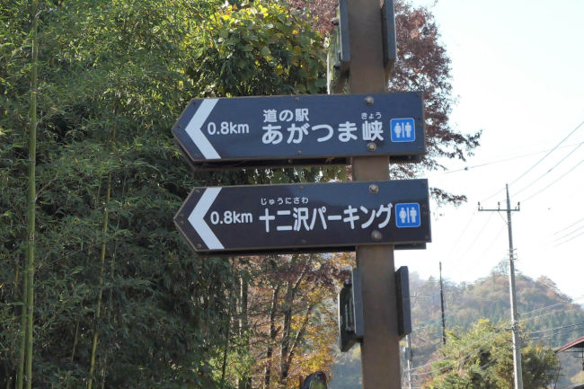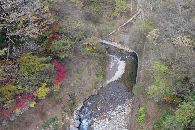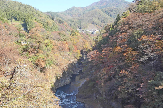 あがつま狭は長さ4km、一番深い高低差は50mだそうです。ここから約1km上流にはこれから行く八ッ場ダムがあります。