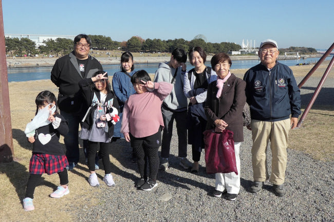 12月中旬 葛西臨海海岸を散策しようと子供や孫たちが集まりました。レストランで昼食をとり、その後、海岸まで散策でした。葛西臨海海岸は3家族の中心ぐらいの位置にあり、集まるのが容易です。 |
