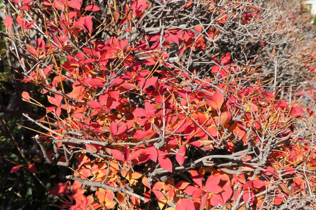 袖ヶ浦カントリーのスタートハウスのおばさんから頂いた皇帝ダリアが満開です。春になると芽を出し急成長し冬に花を咲かせます。満天星(どうだん)つつじもきれいに色づいています。