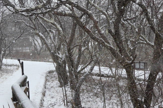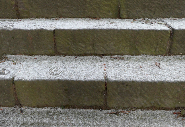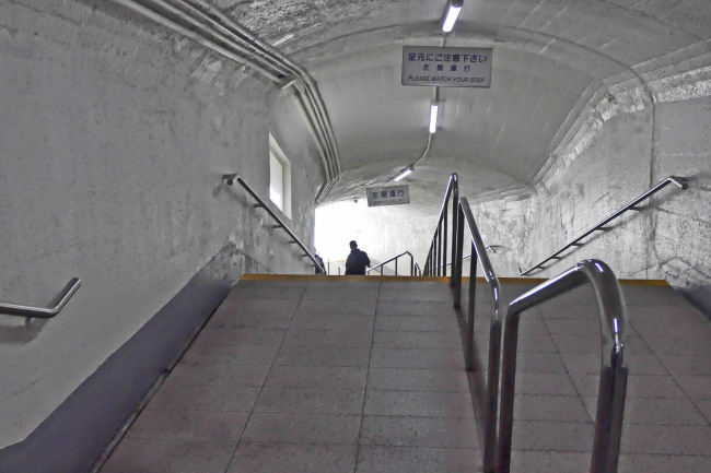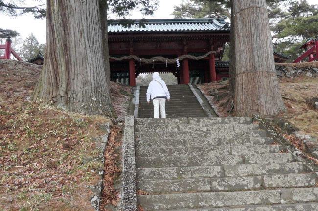 今回はホテルへ行くにはまだ早すぎるので時間つぶしも兼ねて階段を上ってみました。雪が降り始め、階段には手すりもなく、滑って転げ落ちたら大変なので、慎重に登ってゆきました。 |
