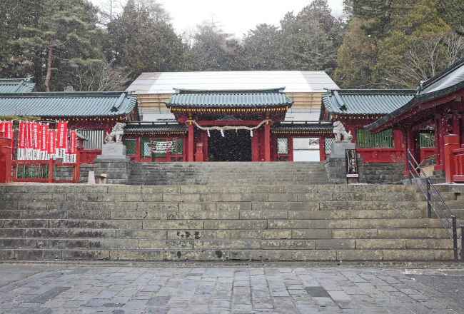 3つの大きな鳥居、水神の碑、、唐門と御神体山、山霊宮(やまのみや)御神木(いちいの木)、男体龍水で銭洗い、幸運の杜への入り口、さざれ石、男体山の「大蛇」御神像、奥日光の奇石「牛石(うしいし)」
