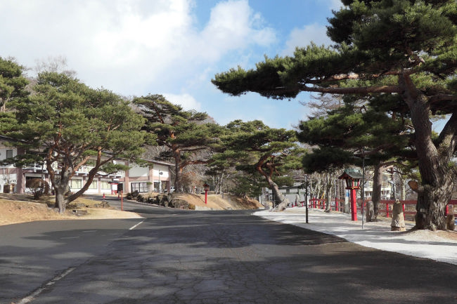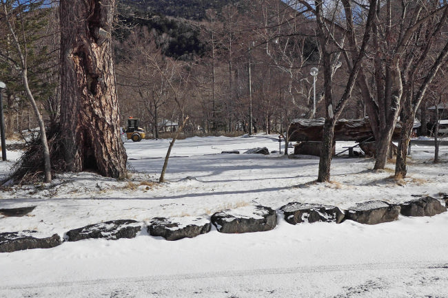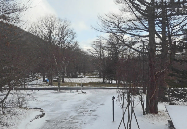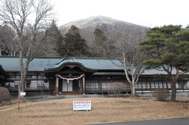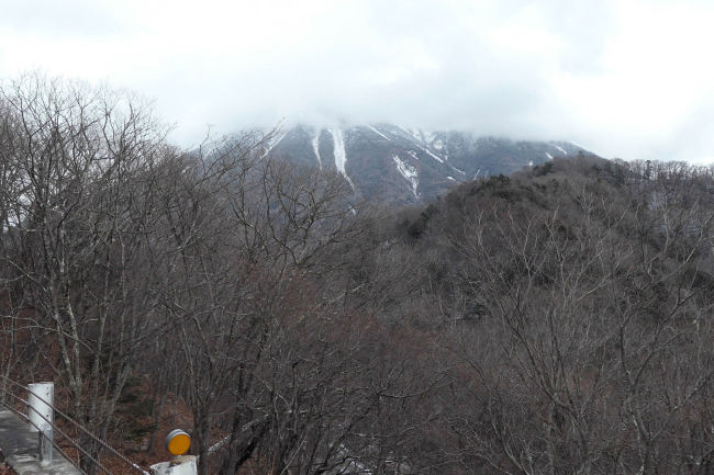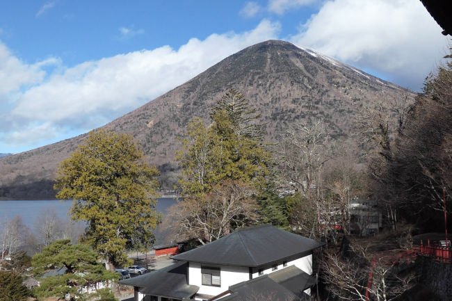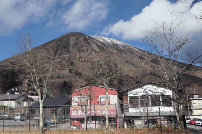 男体山への登山口はここから見えるまだ雪がない所へ登りそこから今は雪をかぶった山頂へ登ってゆきます。