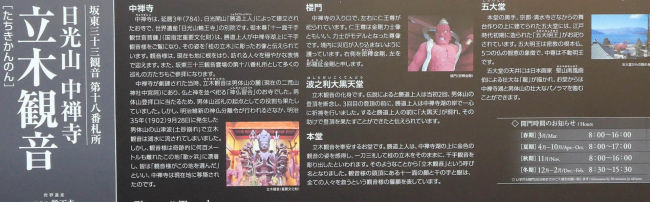 日光山中善寺は天台宗の寺院で世界遺産「日光山輪王寺」の別院で。坂東三十三観音霊場の第18番札所であり巡礼の名所です。この中禅寺には立木観音や五大明王像が安置された五大堂があります。