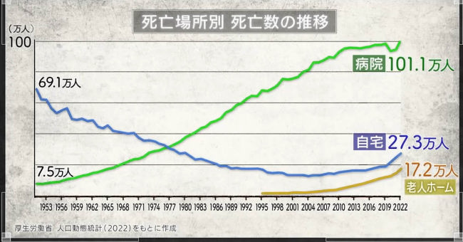 病院で栄養を胃ろうで取り、水分を点滴で取るなどは無意味なことだと思う人が増えているのでしょう。