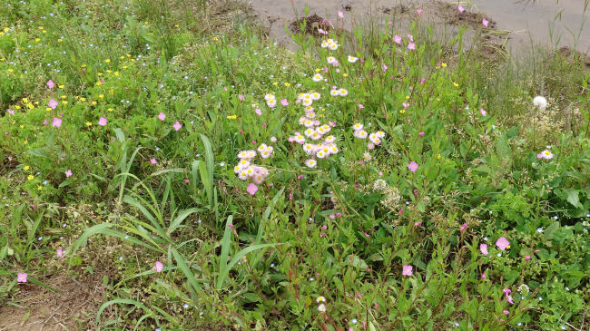 6月末 散歩道にもいろいろな花や鴨たちを見ることが出来ます。 |