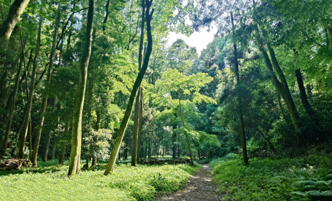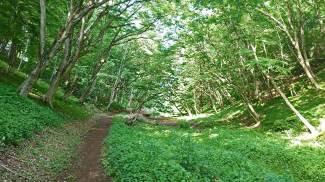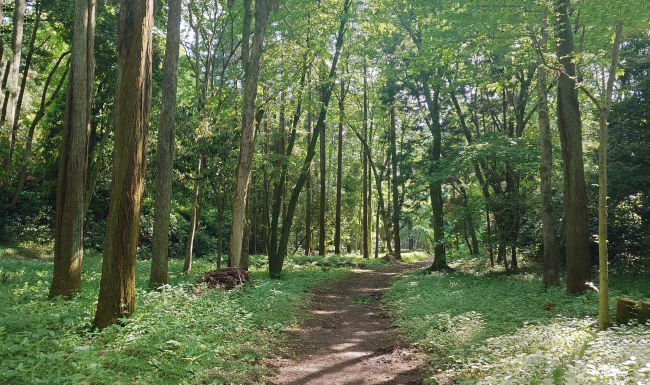 5月中旬、いつもの散歩道も新緑の美しさを映し出しています。 |