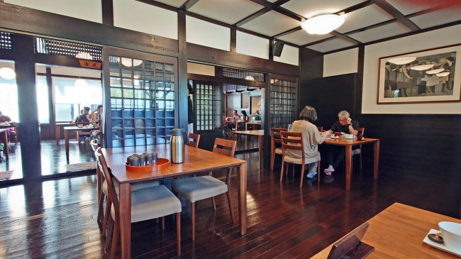 食堂は別棟でかなり大きな食堂でした。風が強くなってきました。 |