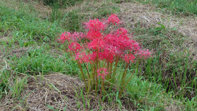 山道にも彼岸花が所どこに咲いています。 |